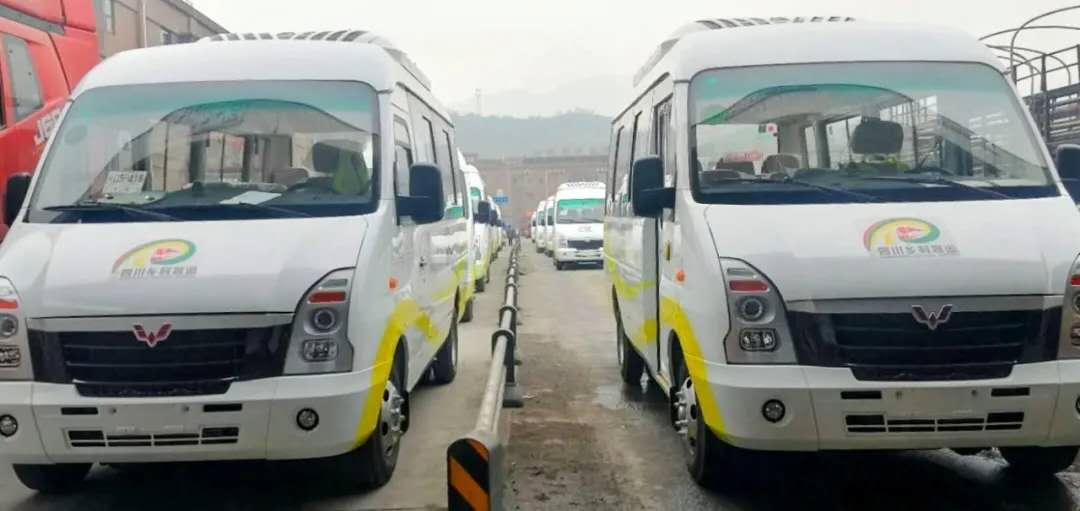 近日,在四川雅安市交警支隊交管所外,一輛輛外觀新穎大氣的五菱客車排隊等待上牌。上牌后,這些客車將去到四川雅安市石棉縣,助力石棉縣人民便捷出行。