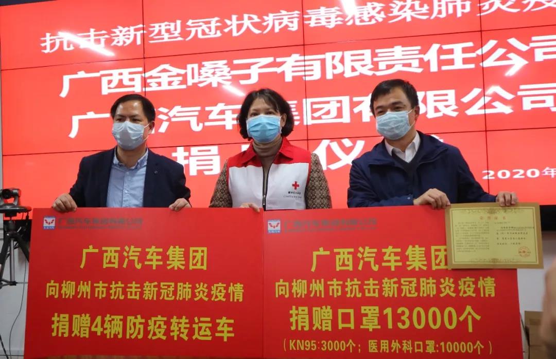 新型冠狀病毒感染的肺炎疫情牽動(dòng)著全國(guó)人民的心,也牽動(dòng)著五菱人的心。疫情發(fā)展至今,廣西汽車集團(tuán)積極響應(yīng)自治區(qū)黨委、政府及柳州市委、市政府關(guān)于新型冠狀病毒感染肺炎疫情防控工作的決策部署,全力開展疫情防控工作,根據(jù)當(dāng)下的實(shí)際情況,發(fā)揮自身優(yōu)勢(shì),進(jìn)行了一系列公益捐贈(zèng),為國(guó)家抗“疫”大戰(zhàn)貢獻(xiàn)國(guó)企擔(dān)當(dāng),共同組成抗擊疫情的強(qiáng)大后盾。