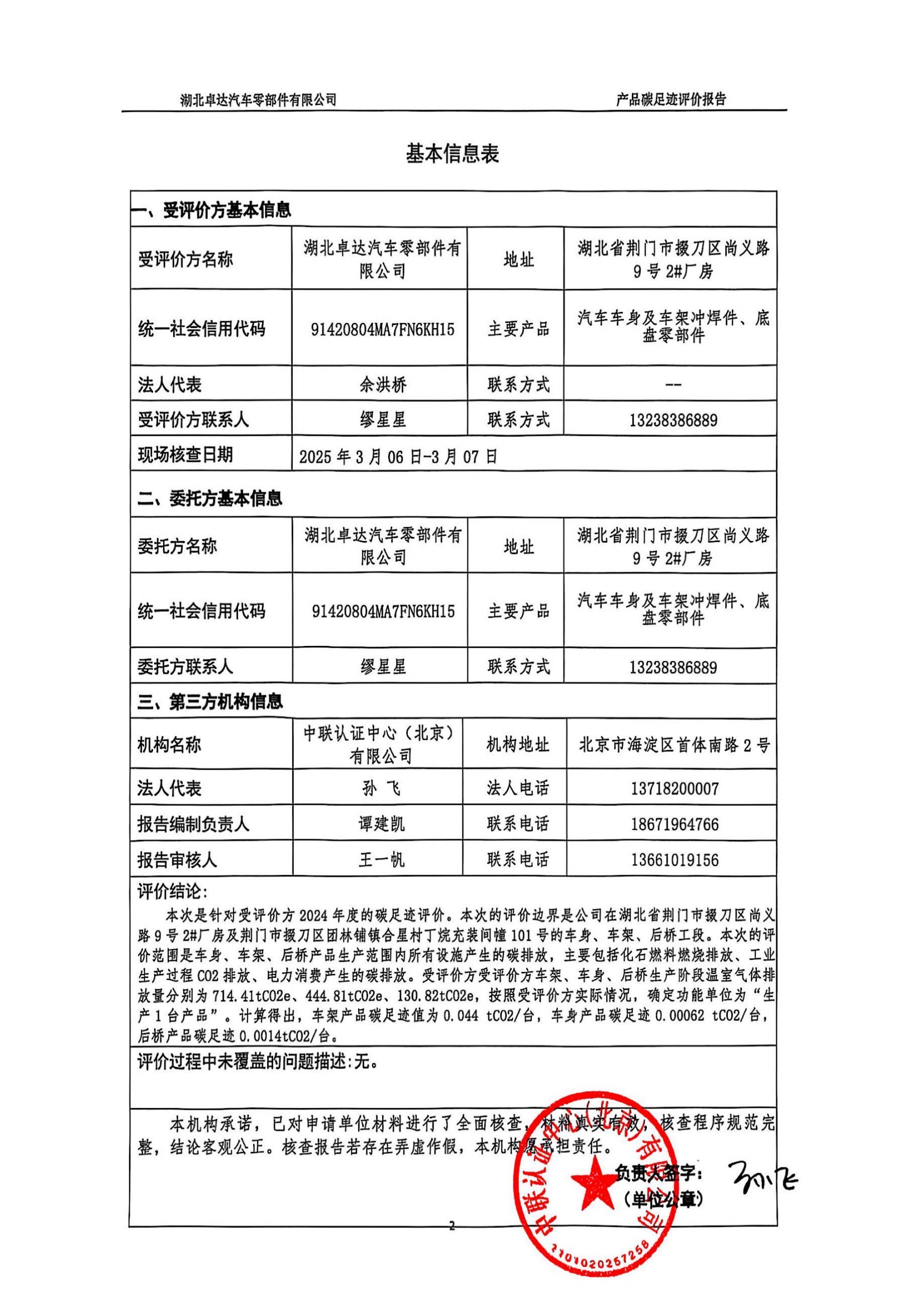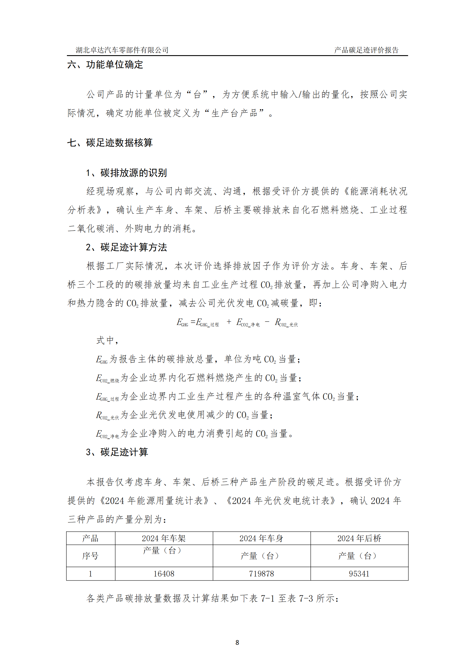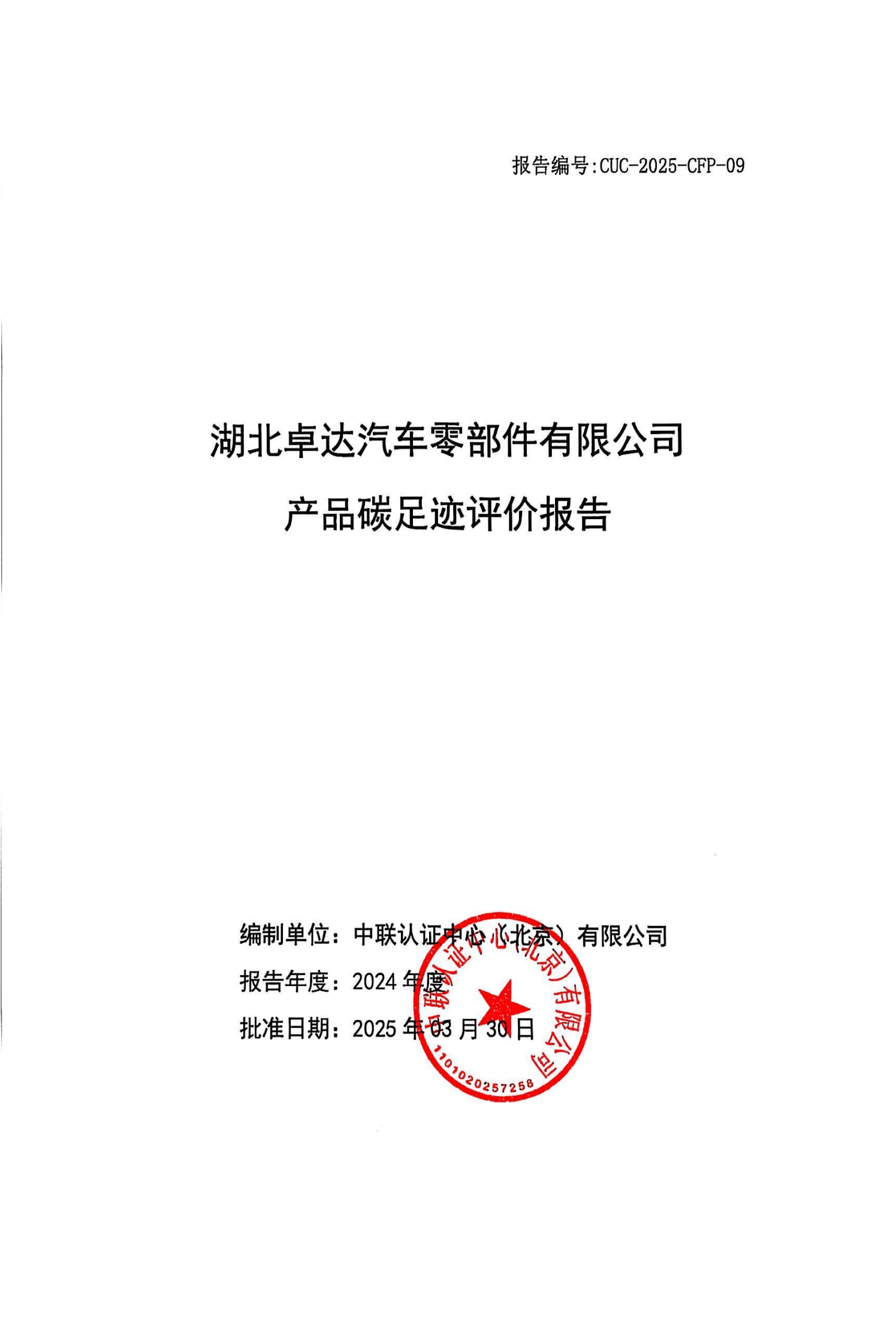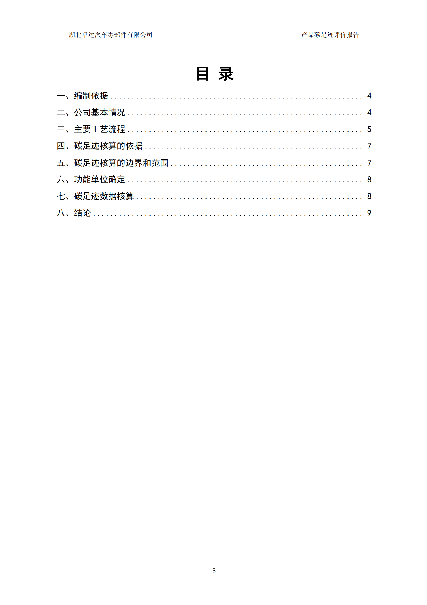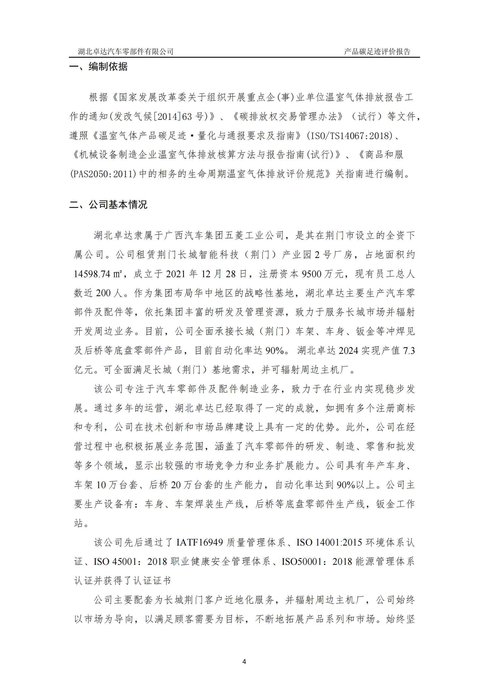 湖北卓達汽車零部件有限公司產(chǎn)品碳足跡評價報告