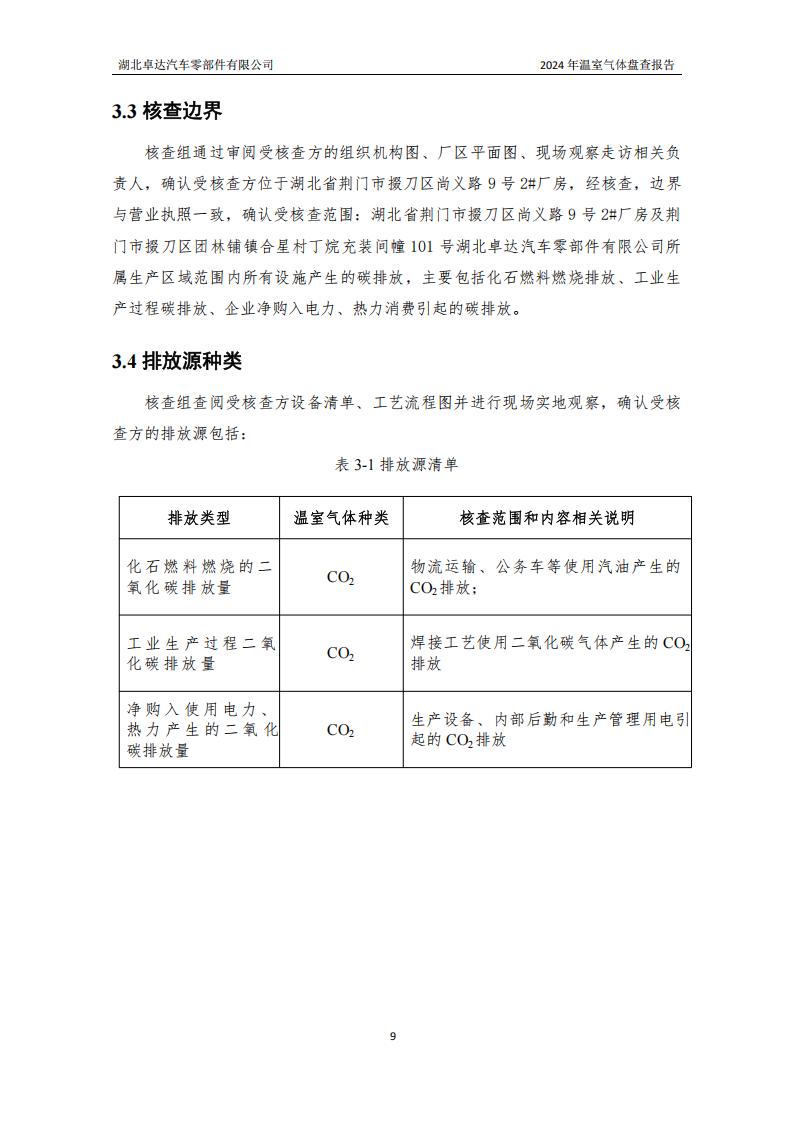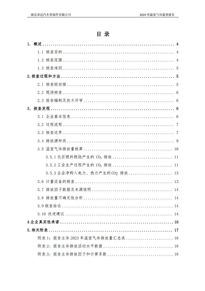 湖北卓達(dá)汽車零部件有限公司溫室氣體排放盤查報(bào)告